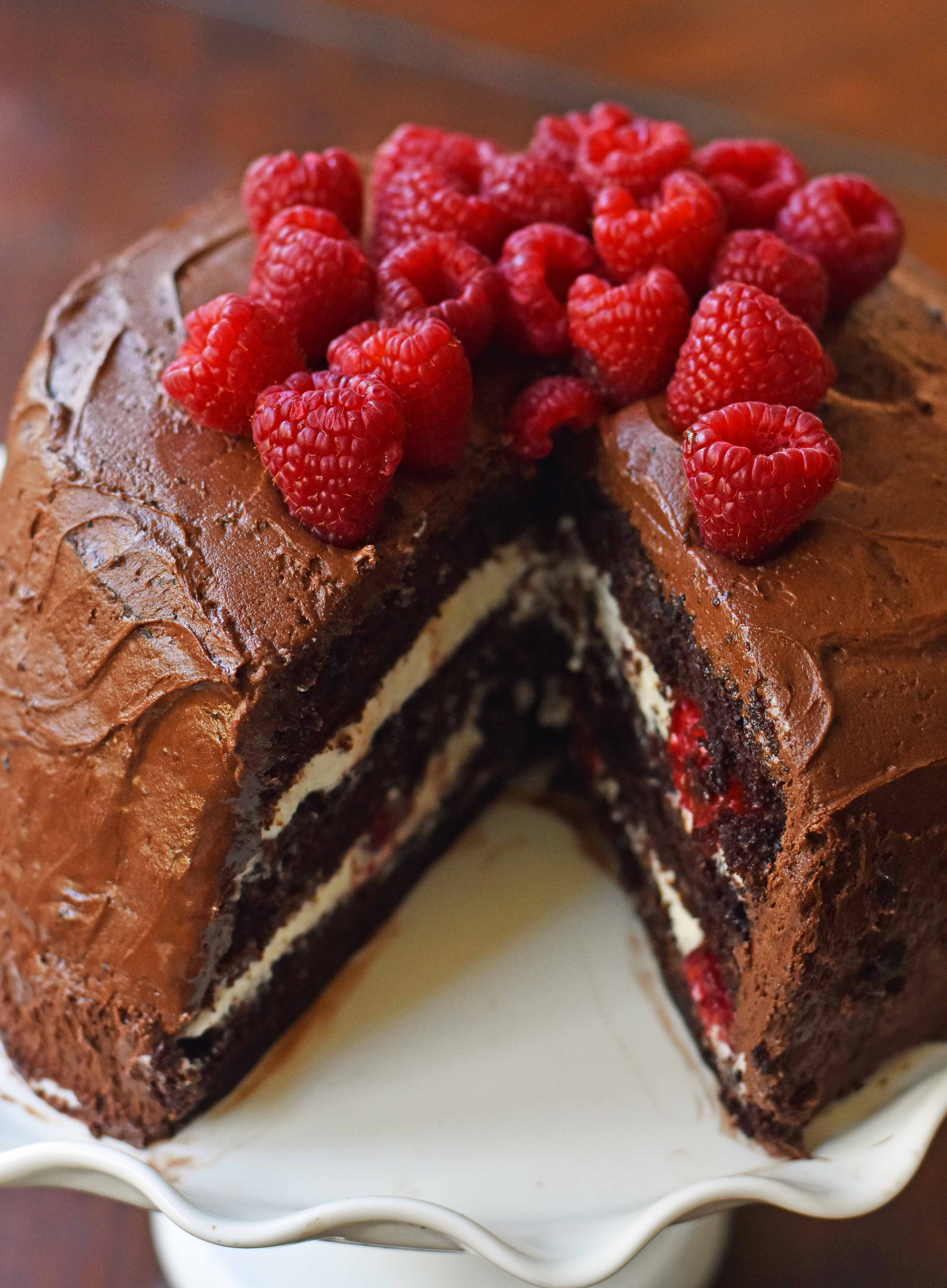 Chocolate Cake With Cream Cheese Frosting And Raspberry Filling / This beauty is baked with a splash of chambord and layered with a sweet raspberry filling, both of which offer bright counterpoints to the thick layer of.